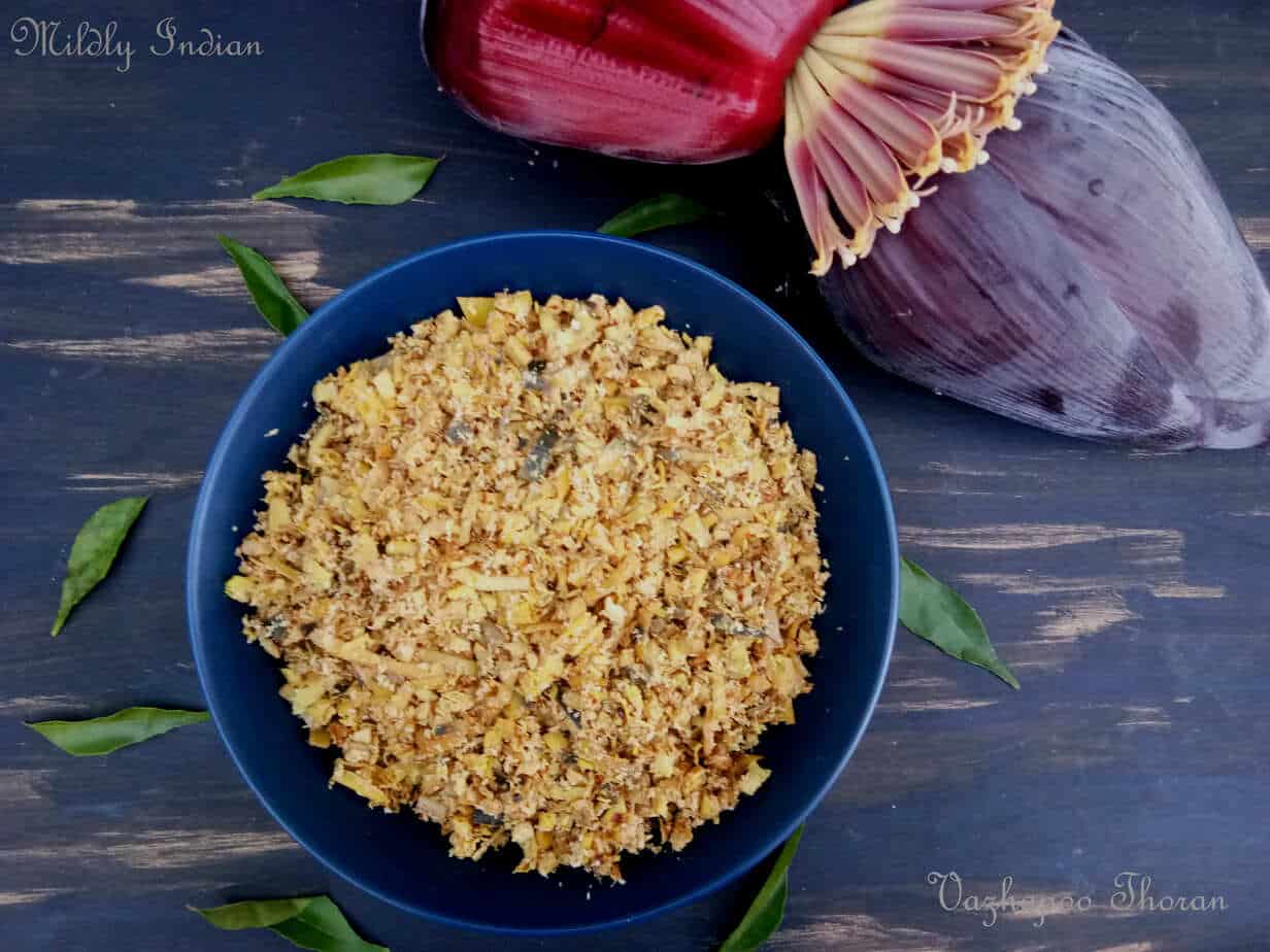 Banana flower dish, easy vegetable dish, easy vegetarian curry, kerala style thoran, onam special, thoran, vazha koombu thoran, vishu recipe ingredients: